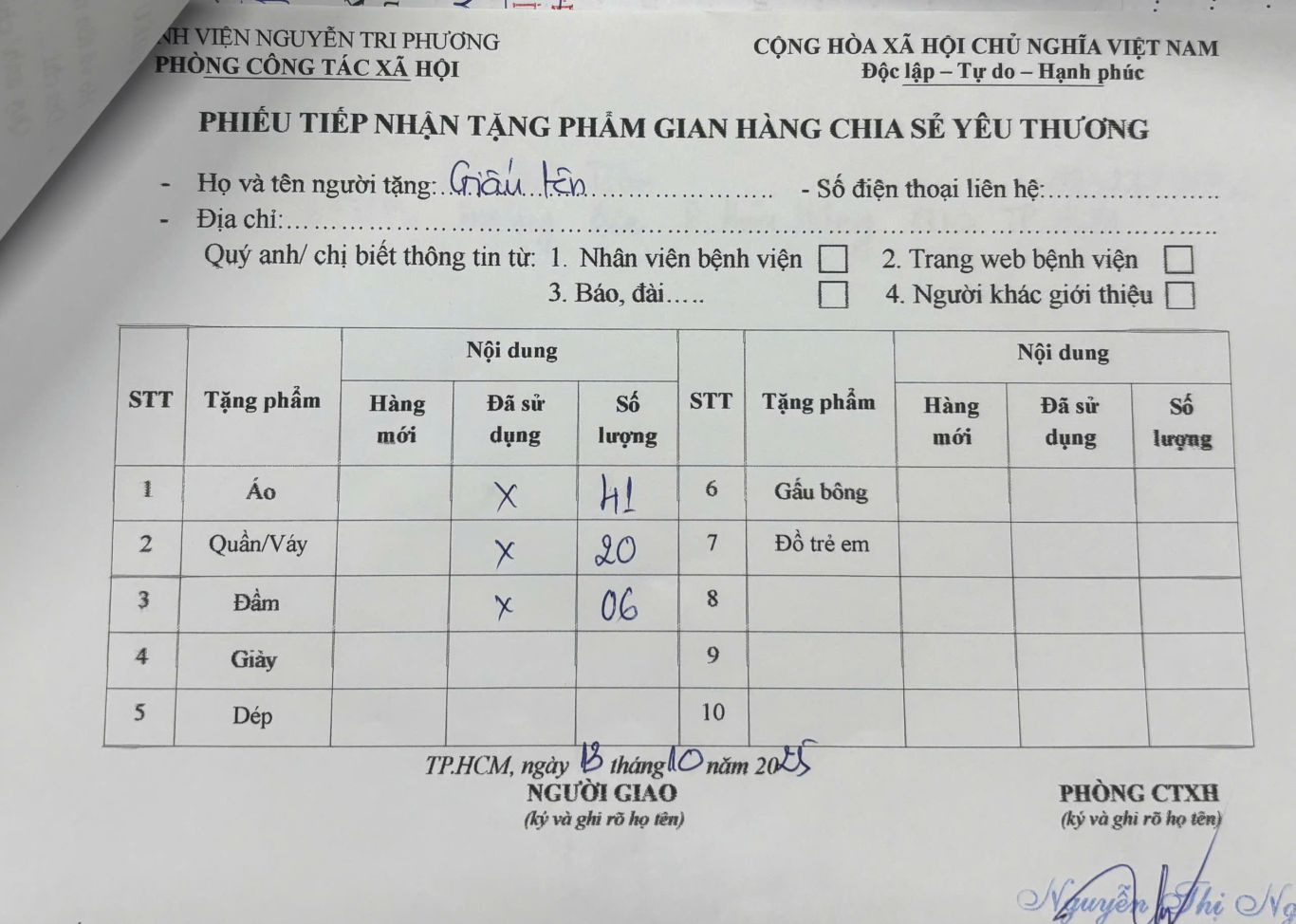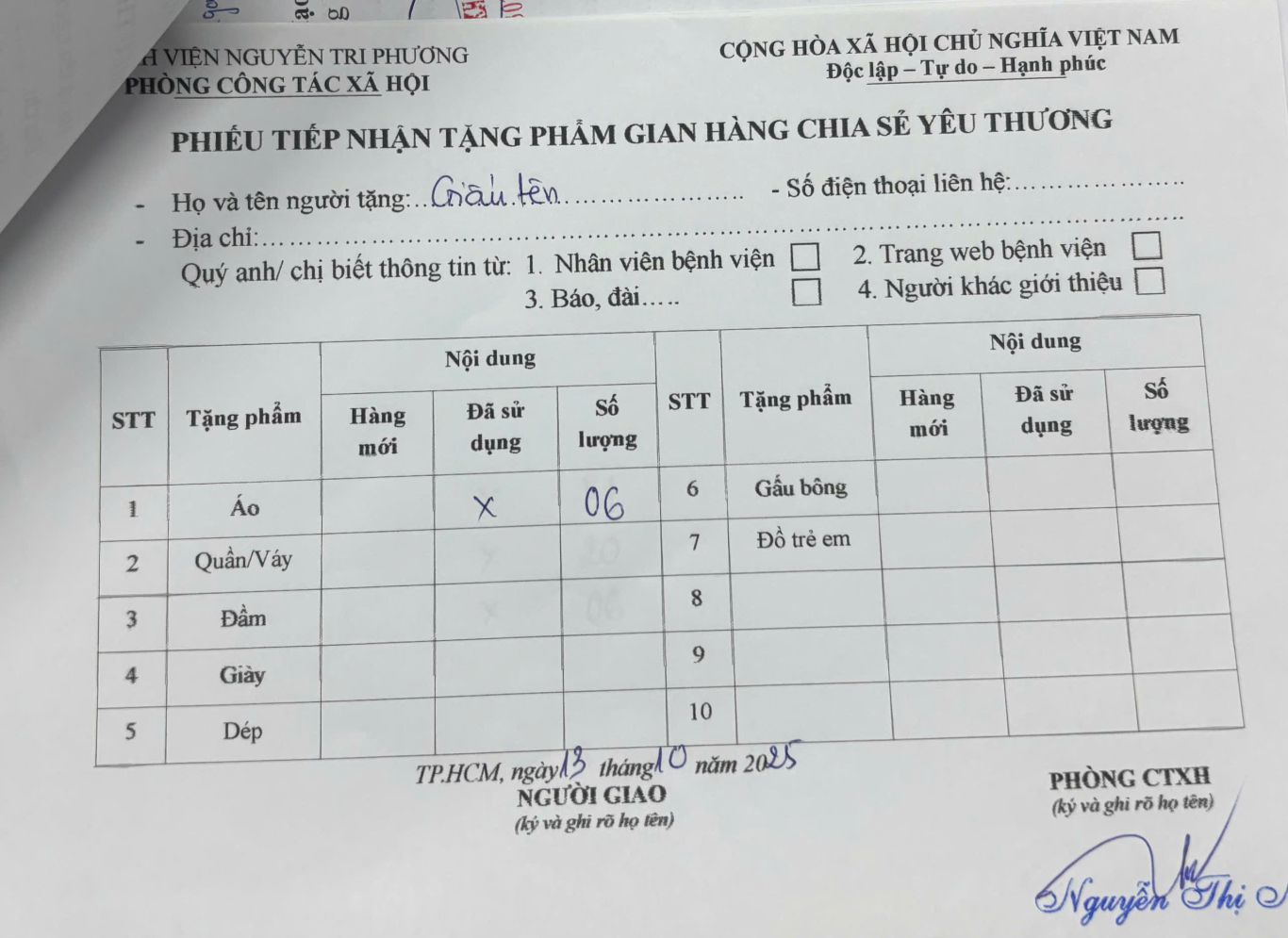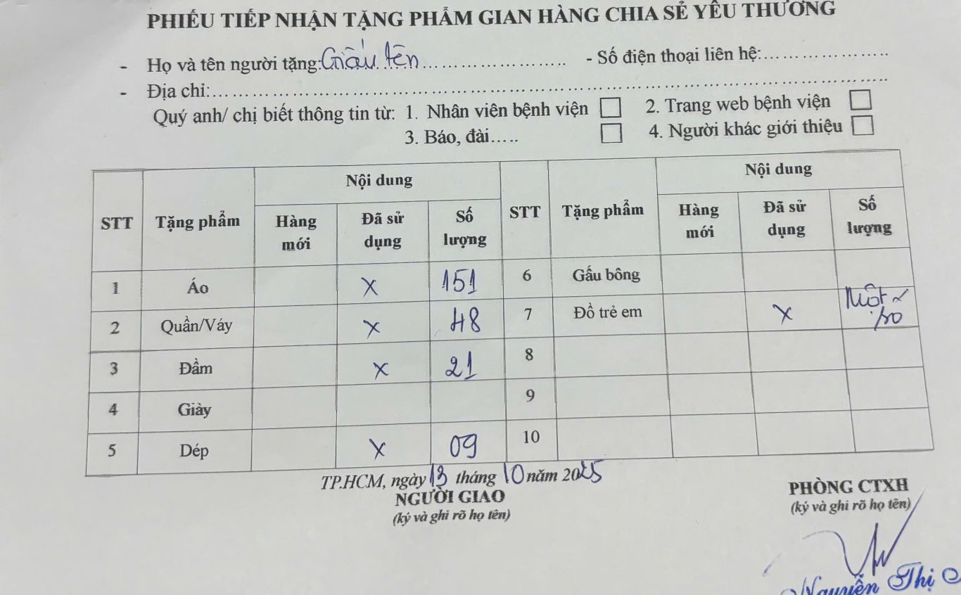 THÔNG TIN TIẾP NHẬN TẶNG PHẨM GIAN HÀNG CHIA SẺ YÊU THƯƠNG NGÀY 13/10/2025