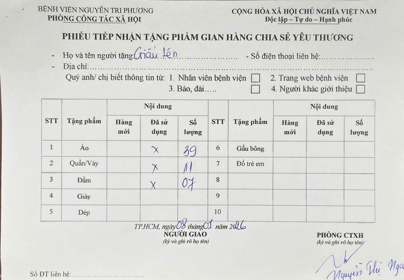 THÔNG TIN TIẾP NHẬN TẶNG PHẨM GIAN HÀNG CHIA SẺ YÊU THƯƠNG NGÀY 08/01/2026