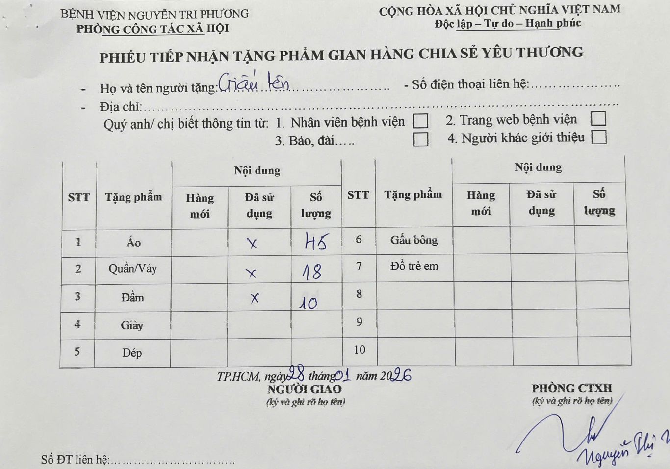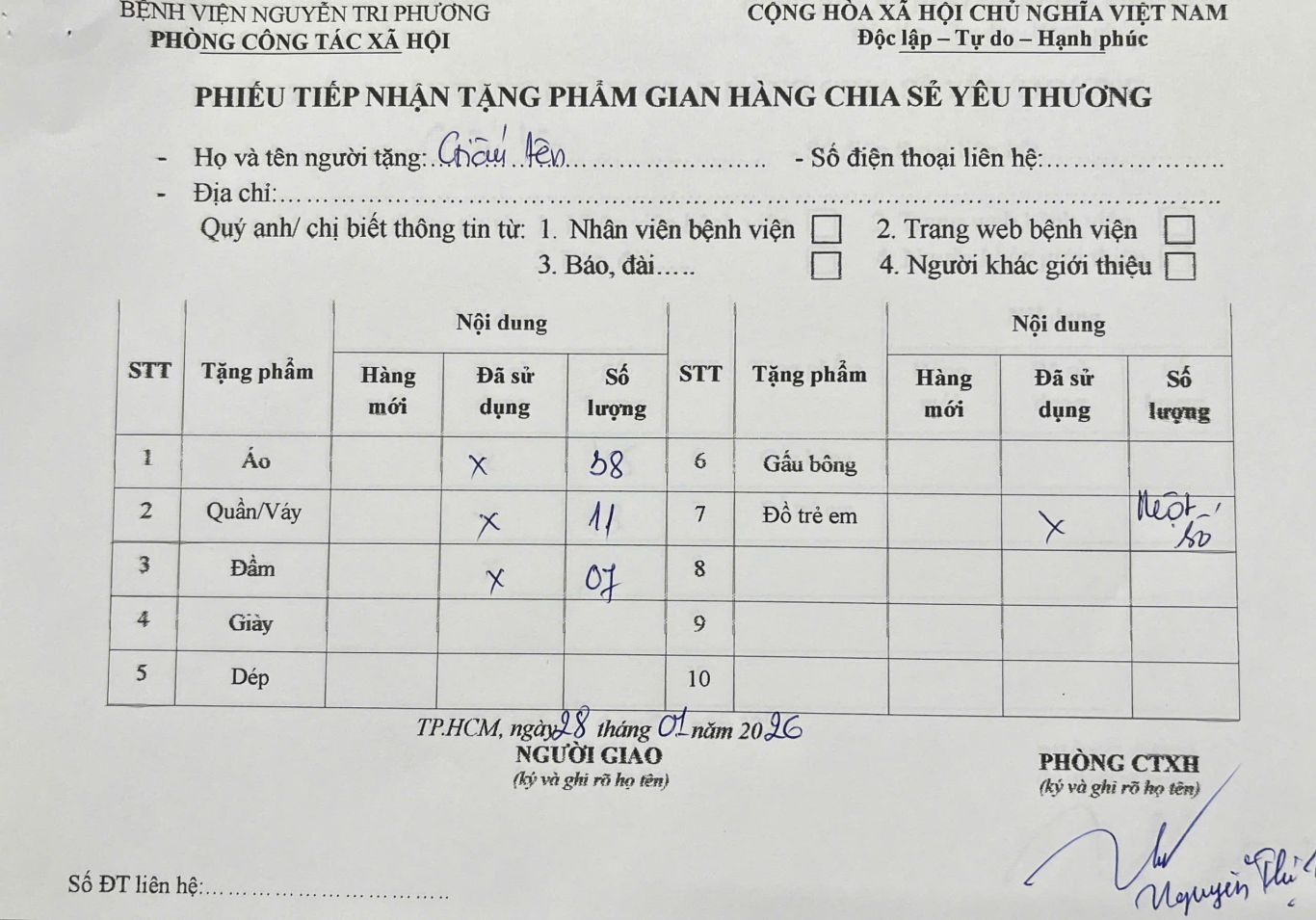 Phòng Công tác xã hội xin chân thành cảm ơn các nhà Hảo tâm và mong rằng gian hàng Chia sẻ Yêu thương sẽ tiếp tục nhận được sự ủng hộ, đóng góp trong thời gian tới.