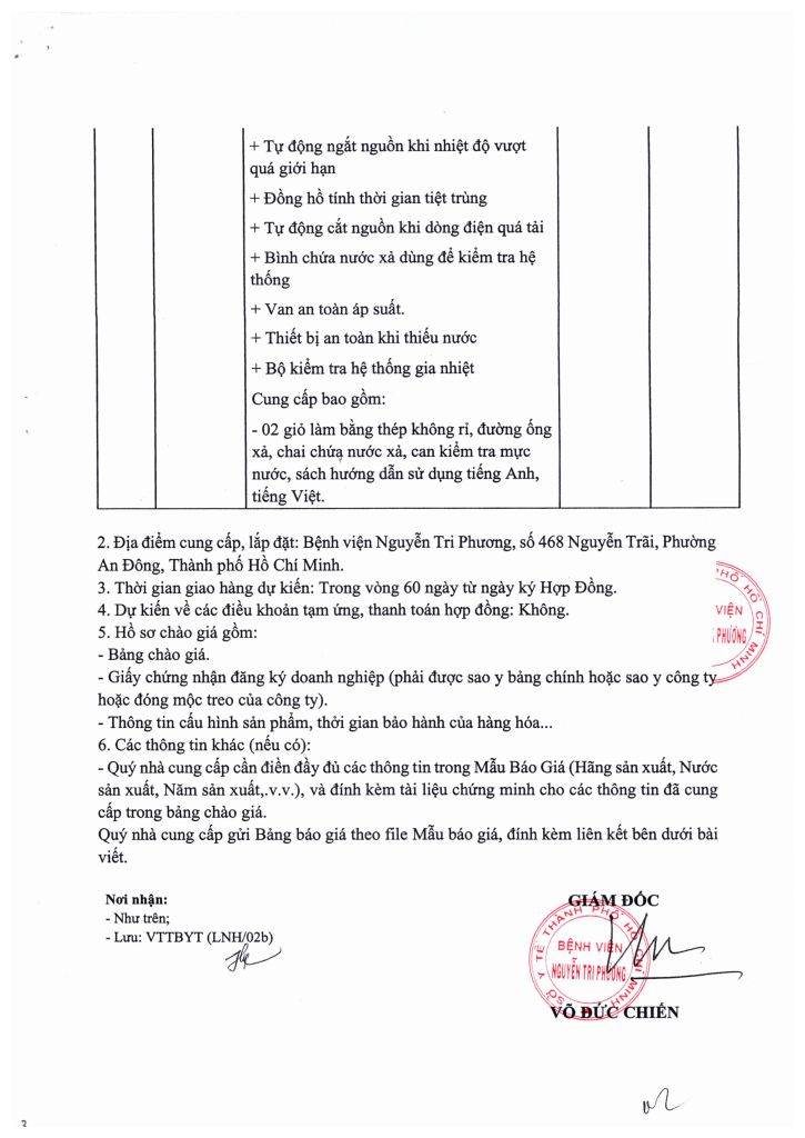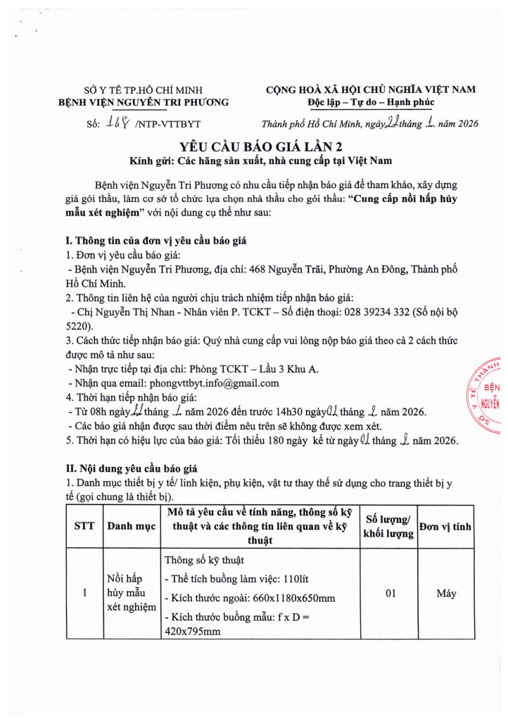 Thông báo lần 2 vv mời chào giá cung cấp nồi hấp hủy mẫu xét nghiệm