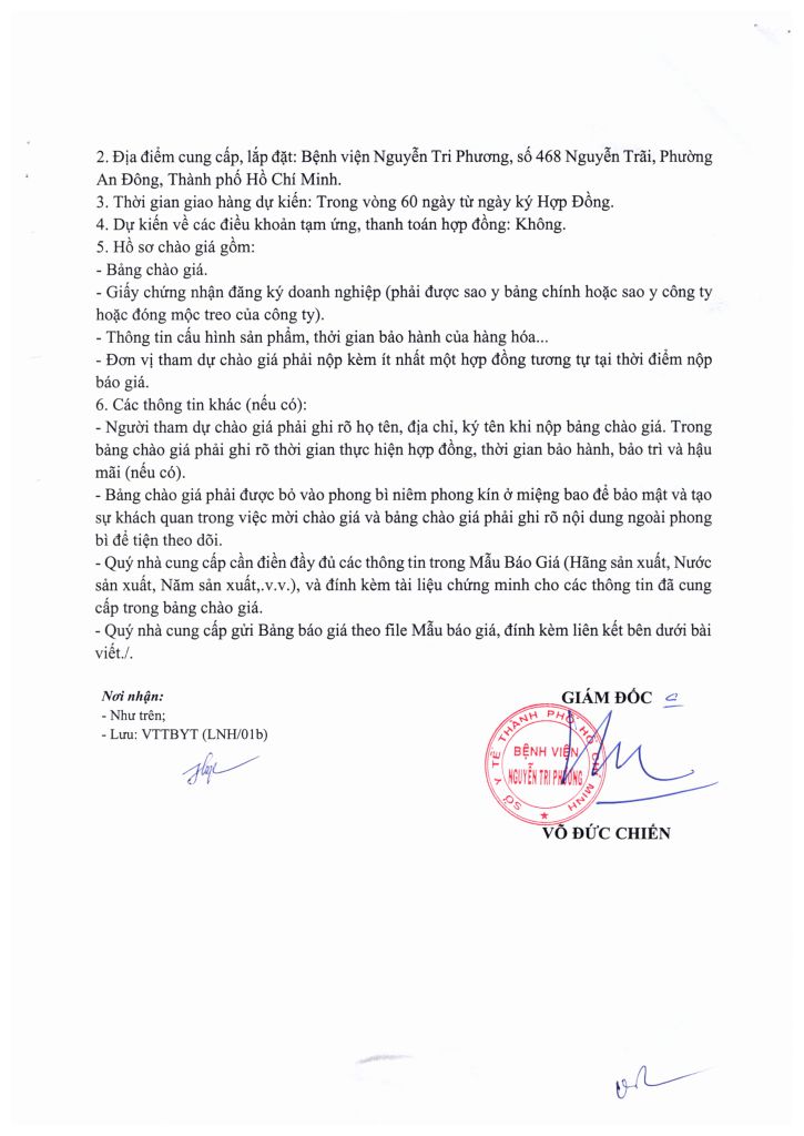 Thông báo vv mời chào giá các loại y dụng cụ