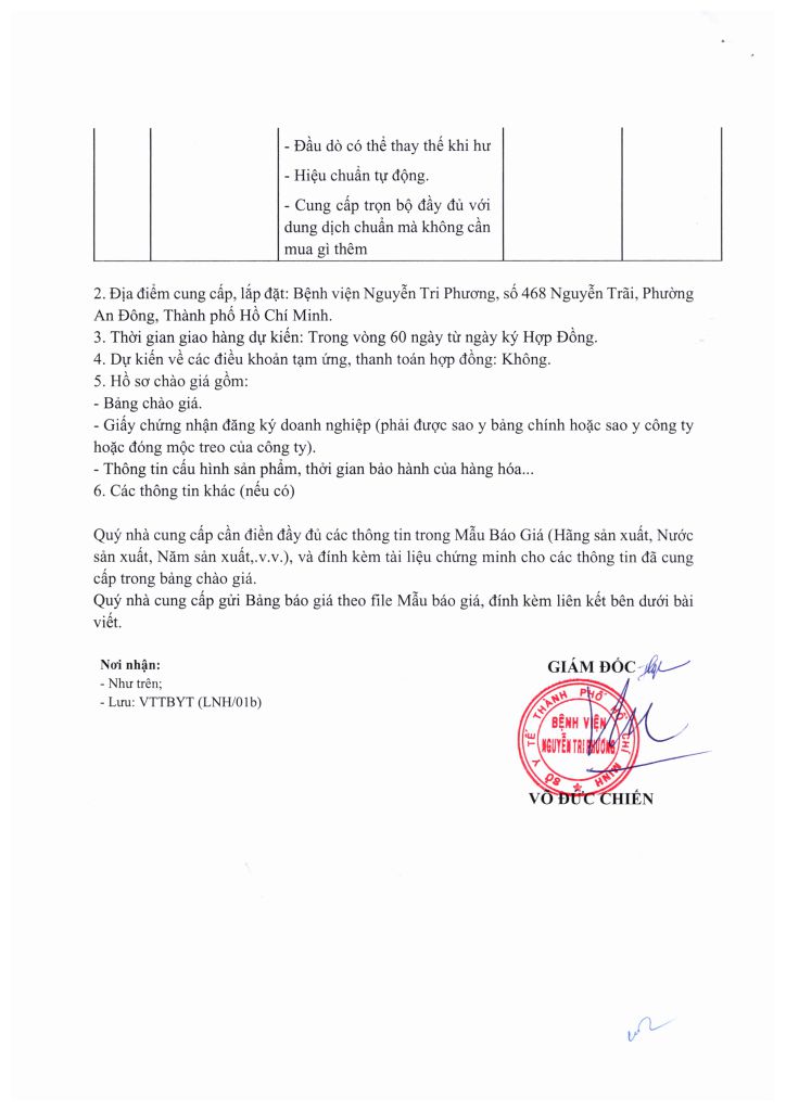 Thông báo vv mời chào giá các loại y dụng cụ