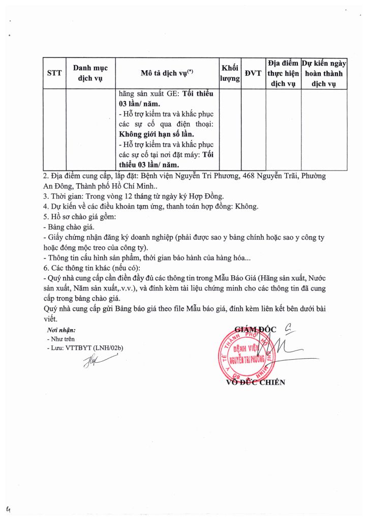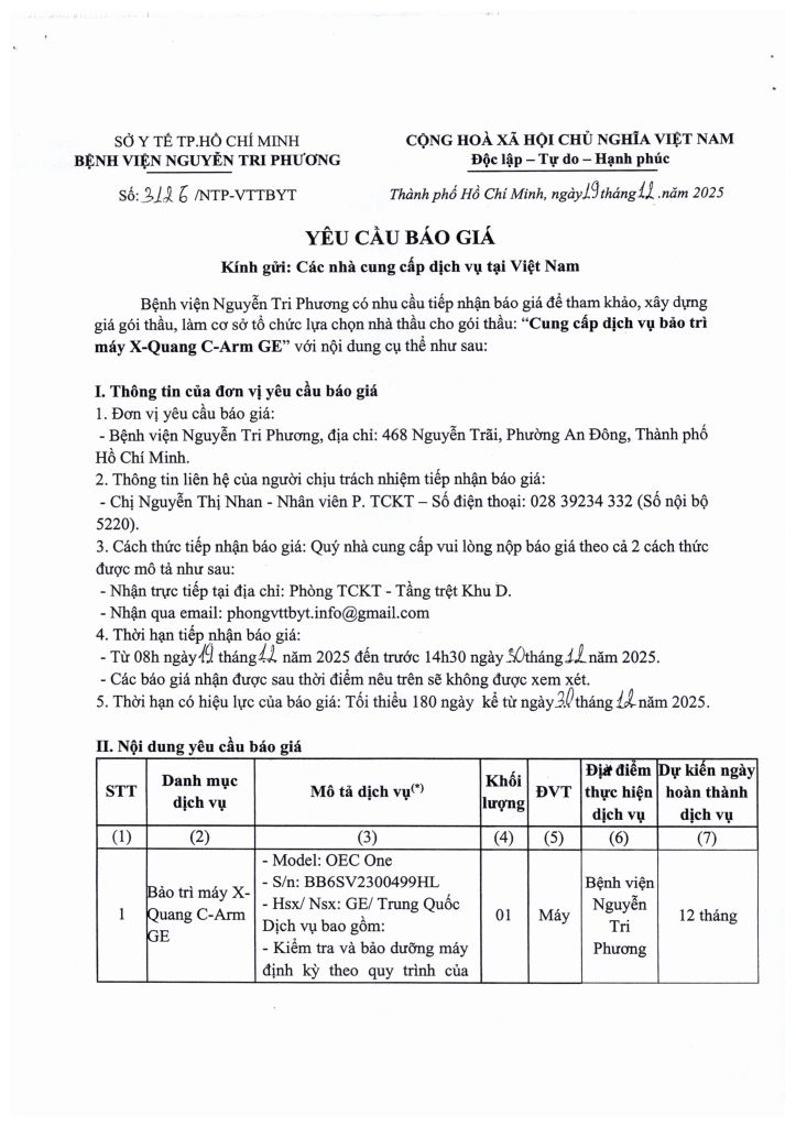 Thông báo vv mời chào giá cung cấp dịch vụ bảo trì máy X-Quang C-Arm GE