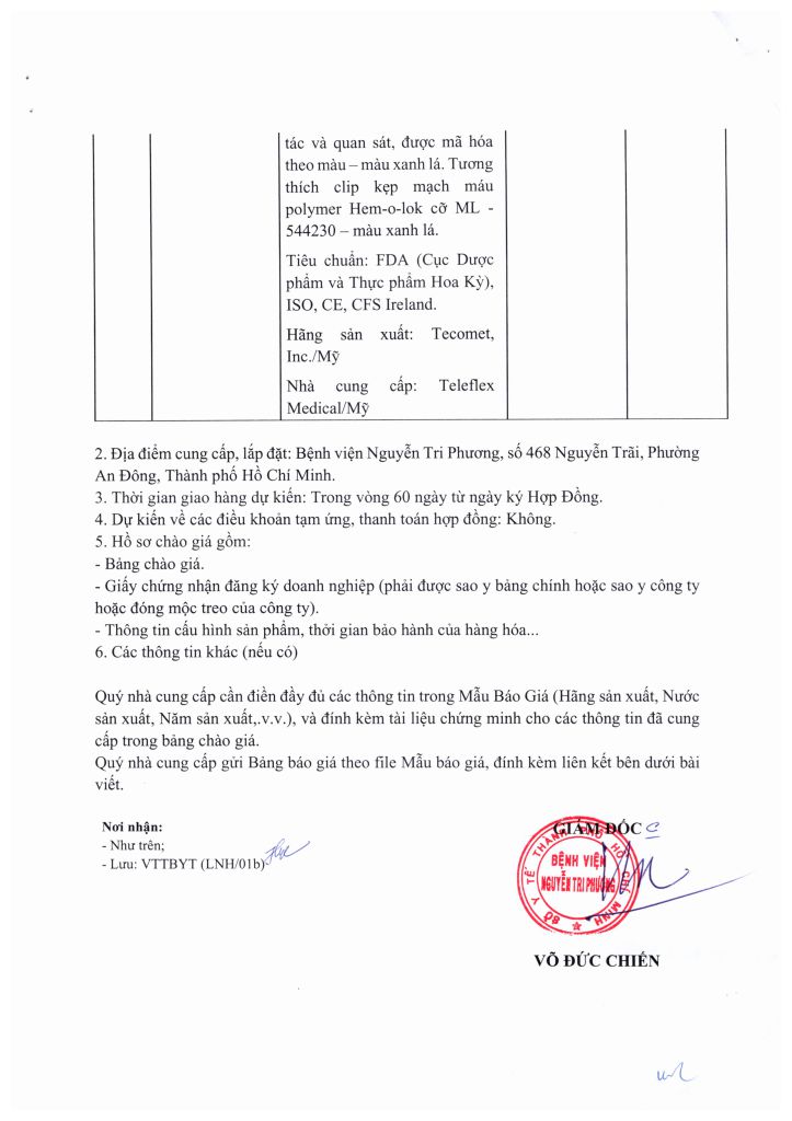 Thông báo vv mời chào giá cung cấp kềm gắp soi niệu dùng trong phẫu thuật