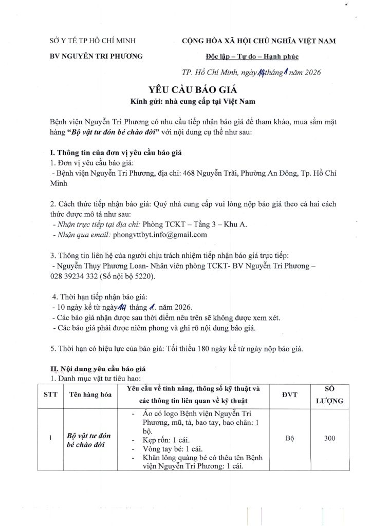 Thông báo vv mời chào giá cung cấp mặt hàng: Bộ vật tư đón bé chào đời