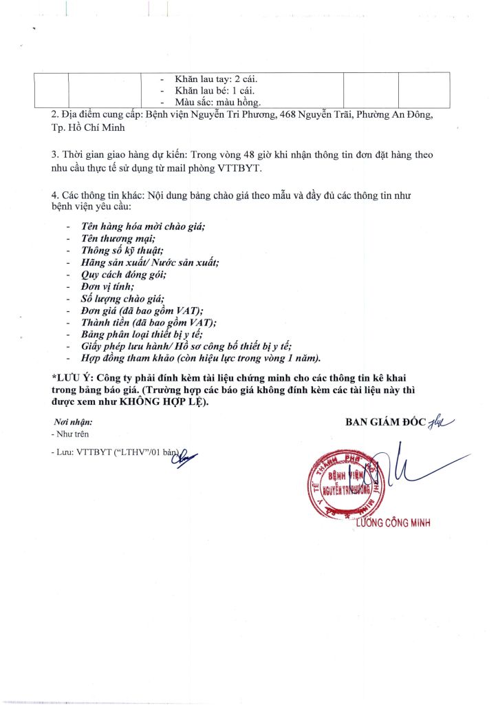 Thông báo vv mời chào giá các loại y dụng cụ
