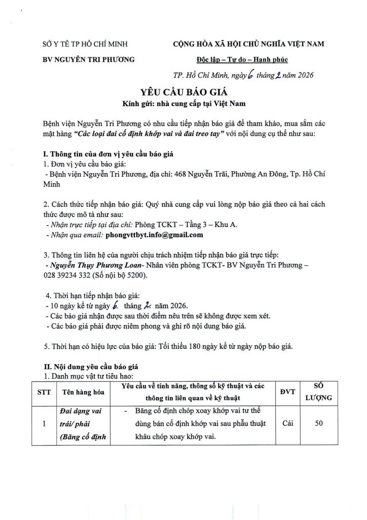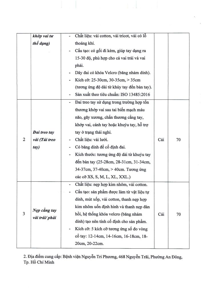 Thông báo vv mời chào giá cung cấp mặt hàng: Các loại đai cố định khớp vai và đai treo tay