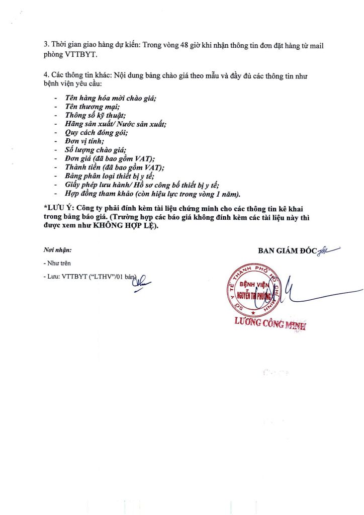 Thông báo vv mời chào giá các loại y dụng cụ