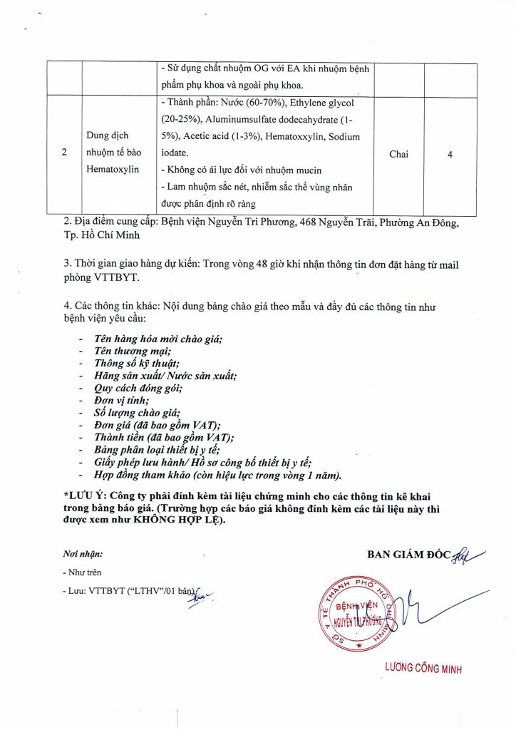 Thông báo vv mời chào giá cung cấp mặt hàng: Các loại dung dịch nhuộm tế bào