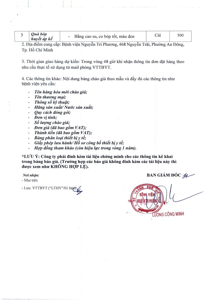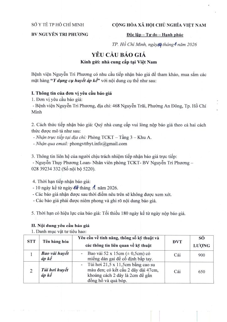 Thông báo vv mời chào giá cung cấp mặt hàng: Y dụng cụ huyết áp kế