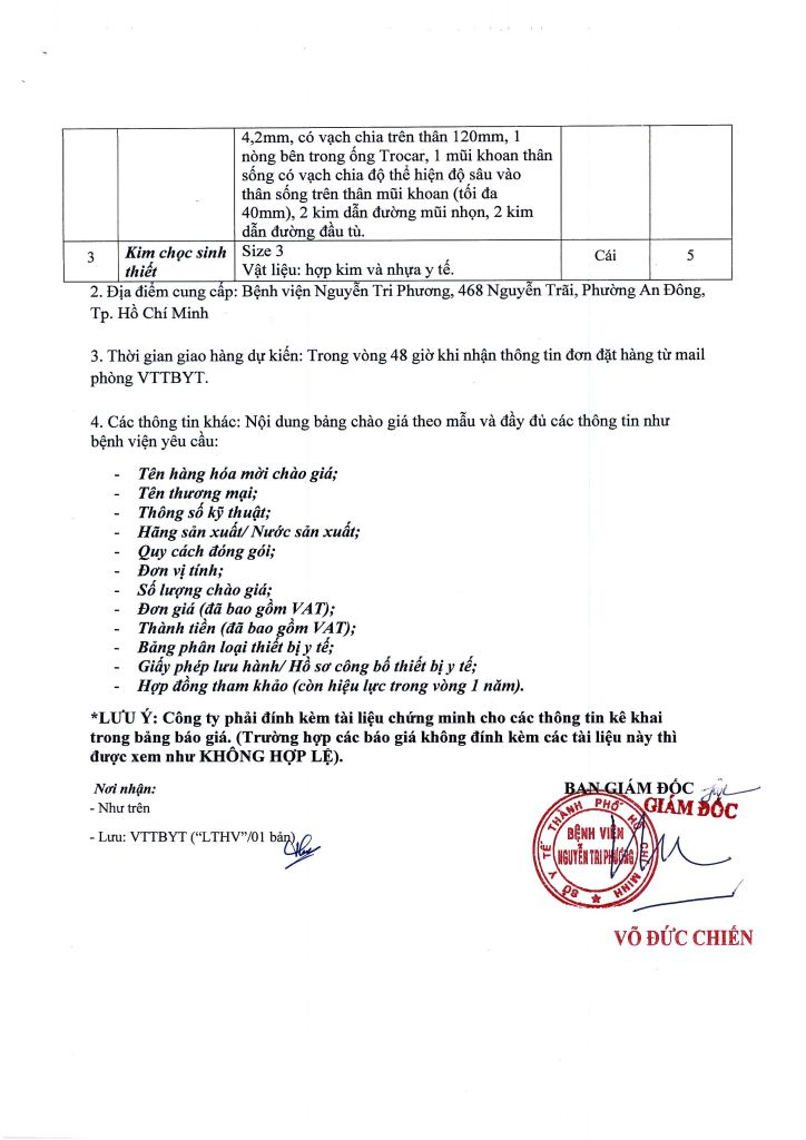 Thông báo vv mời chào giá cung cấp kềm gắp soi niệu dùng trong phẫu thuật