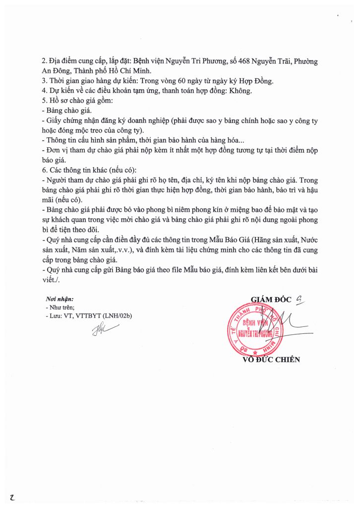 Thông báo lần 3 vv mời chào giá cung cấp dịch vụ cài đặt phần mềm nội soi