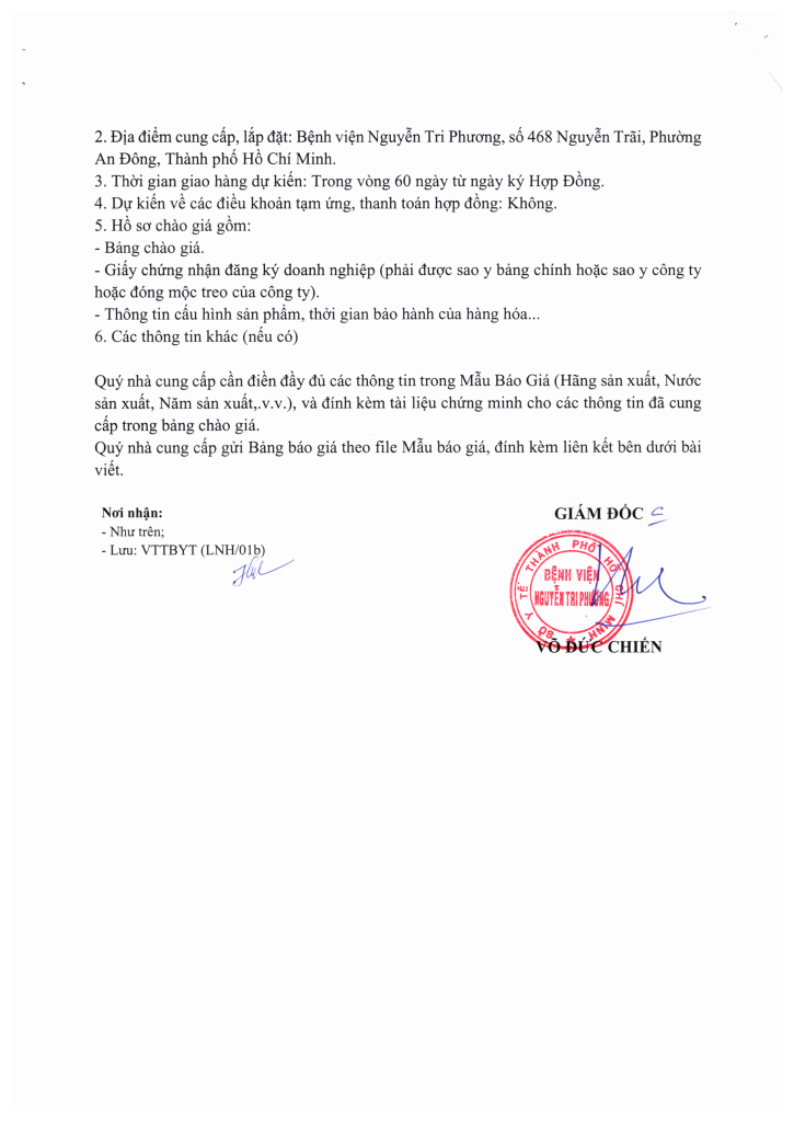 Thông báo vv mời chào giá các loại y dụng cụ
