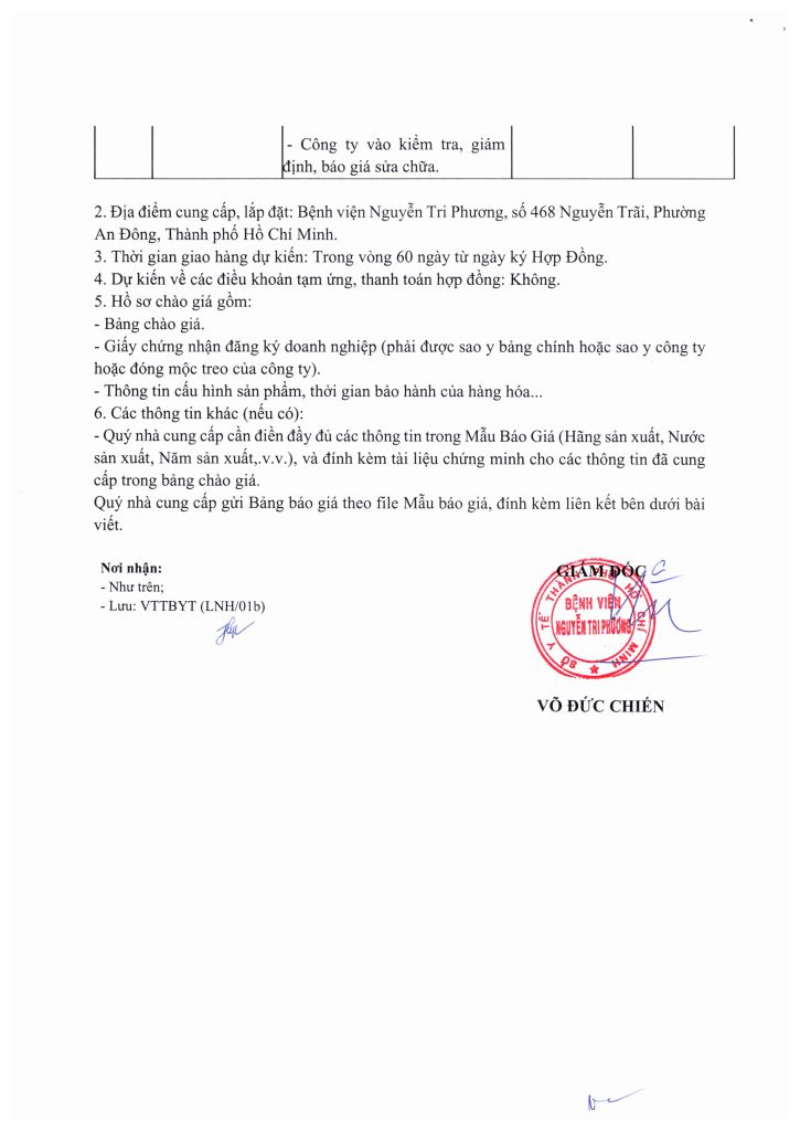 Thông báo vv mời chào giá các loại y dụng cụ