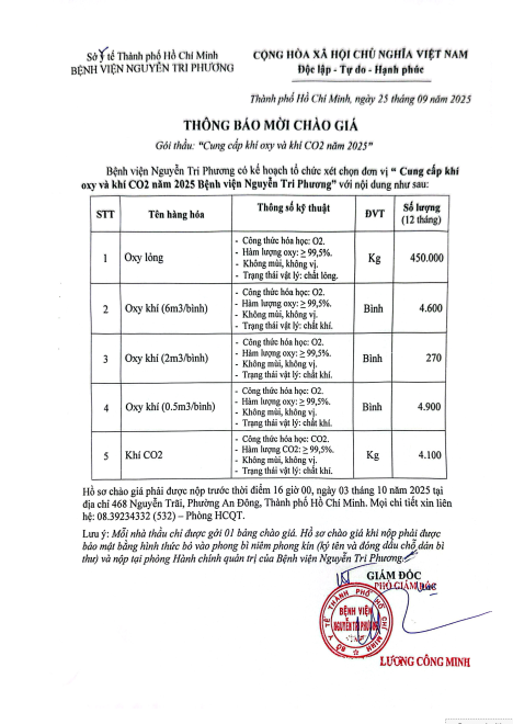 V/v mời chào giá gói thầu: Cung cấp kí oxy và kí CO năm 2025"