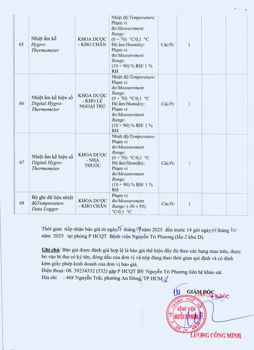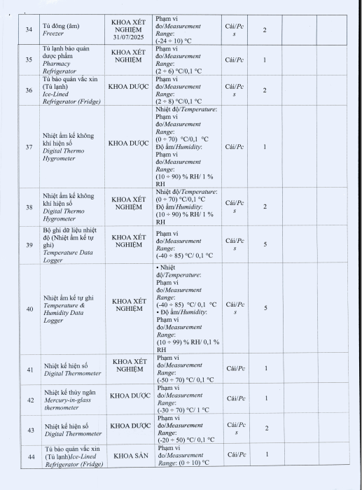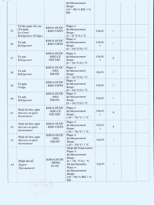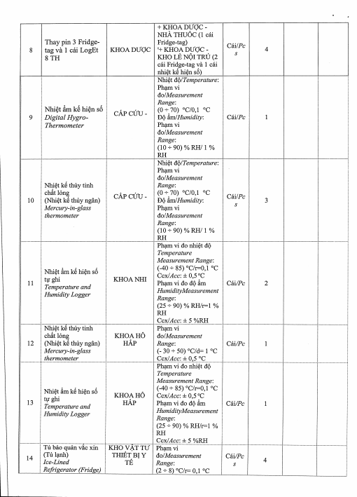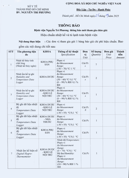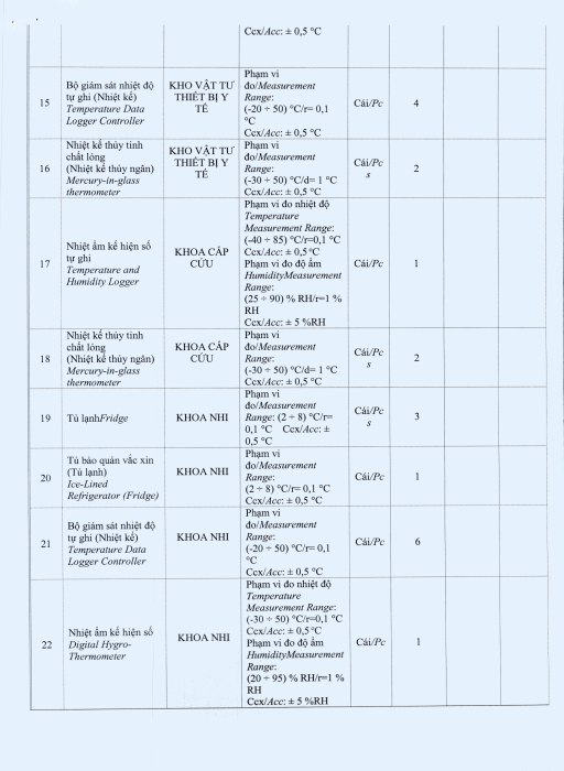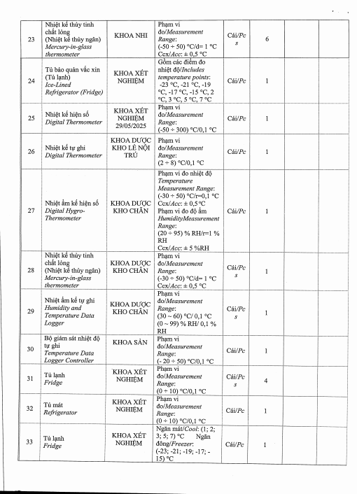 V/v mời chào giá gói thầu: Hiệu chuẩn nhiệt kế và tủ lạnh toàn bệnh viện