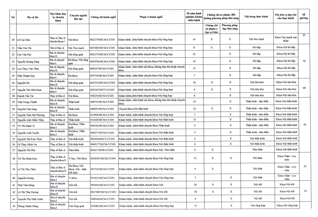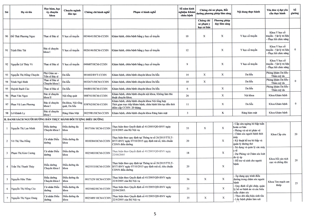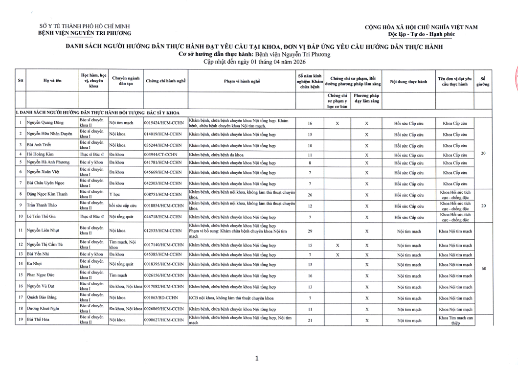 Danh sách người hướng dẫn thực hành tại Bệnh viện Nguyễn Tri Phương