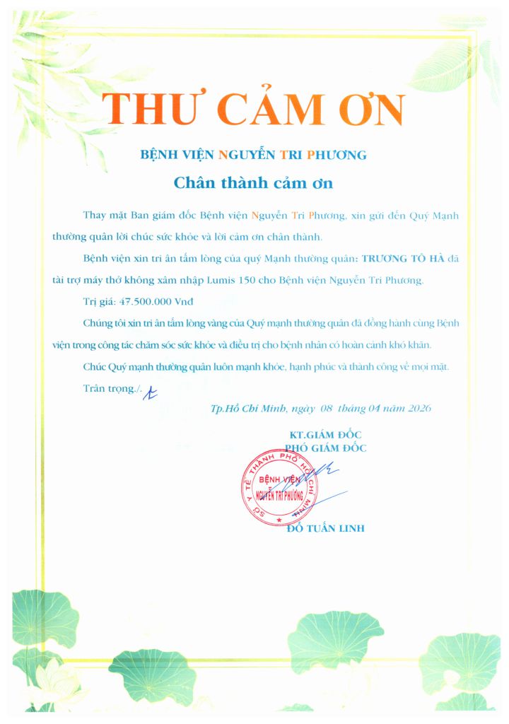 Thư cảm ơn Ông Trương Tô Hà (tháng 04.2026)