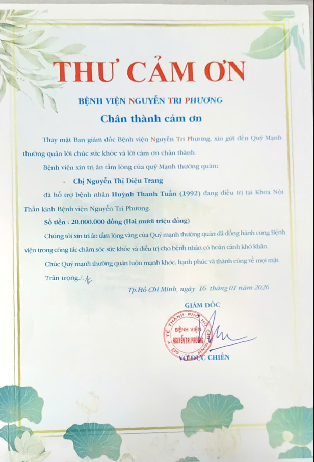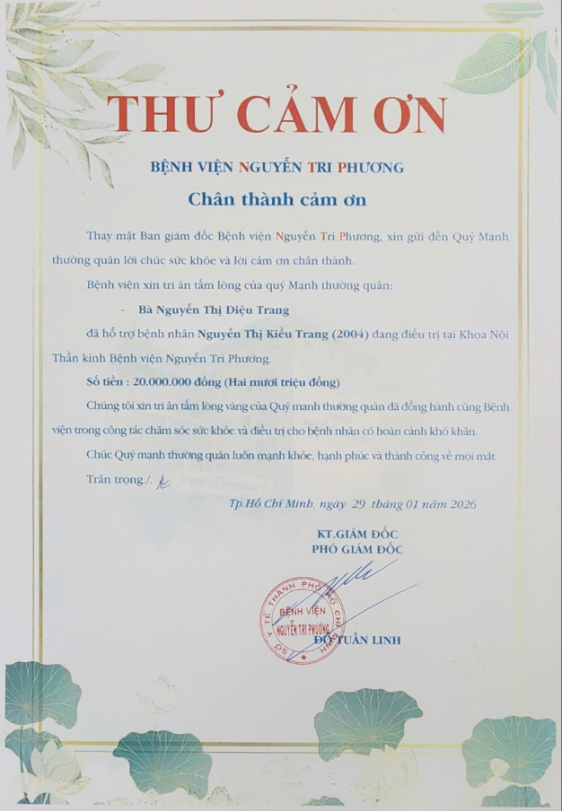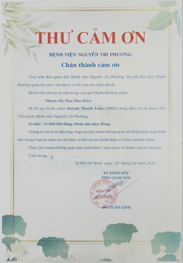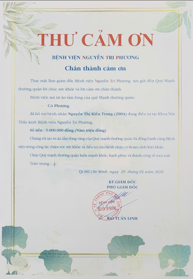 Thư cảm ơn Quý Mạnh thường quân tháng 01.2026 (đợt 2)