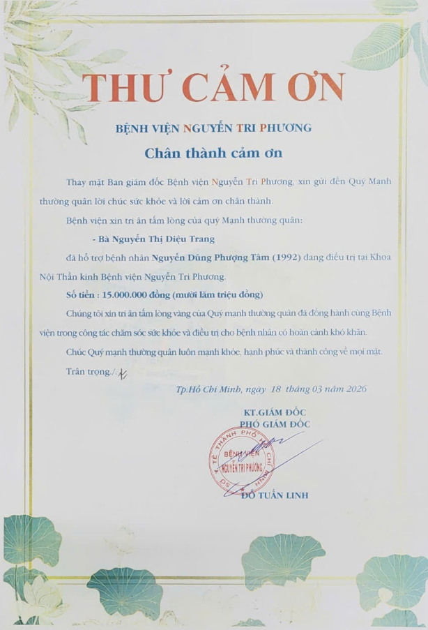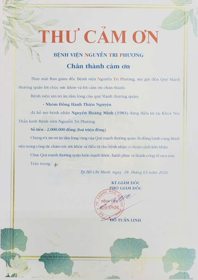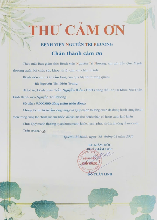 Đã hỗ trợ bệnh nhân khó khăn tại Bệnh viện Nguyễn Tri Phương.