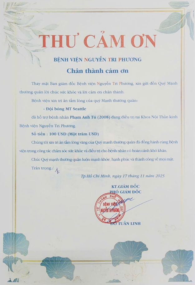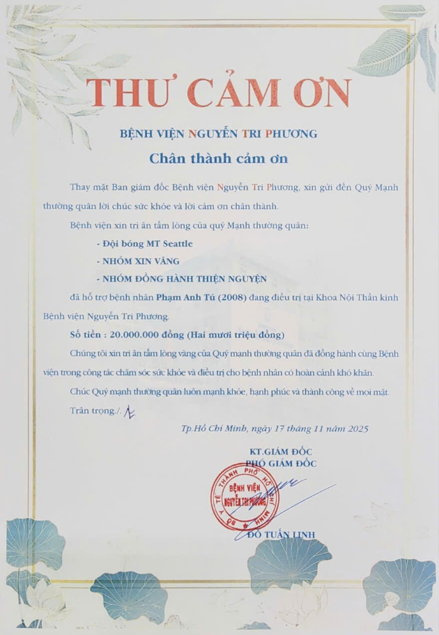 Thư cảm ơn Quý Mạnh thường quân tháng 11.2025 (đợt 2)