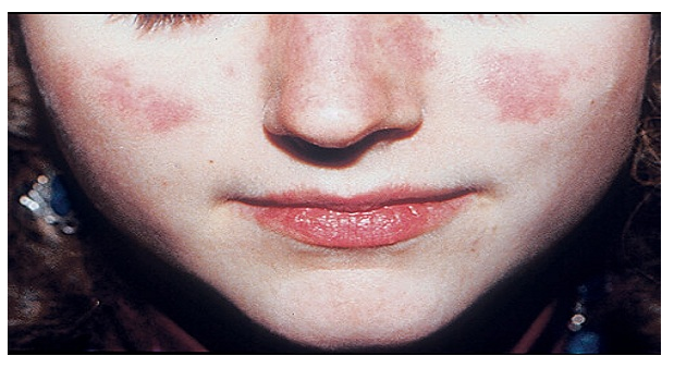 Phần lớn những người bị lupus gặp các vấn đề về da. Các tổn thương tại da khác nhau tùy thuộc vào loại lupus và mức độ hoạt động của lupus. Một trong những dấu hiệu báo hiệu lupus là sự phát ban trên mặt. Ban đỏ ở vị trí mũi và má và trông giống như hình cánh bướm. Ban đỏ thường xuất hiện ở mặt, nhưng nó cũng có thể xuất hiện trên tay, chân, hoặc vị trí khác trên cơ thể.