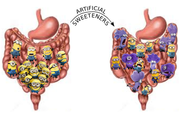 Chất làm ngọt nhân tạo còn được cho là ảnh hưởng đến hệ vi sinh đường ruột với giải thích là các chất làm ngọt nhân tạo không được tiêu hóa ở đường ruột như những loại thực phẩm khác nên sẽ tác động trực tiếp đến các vi khuẩn đường ruột gây ra những ảnh hưởng đến sức khỏe con người. Ngoài ra, tăng nguy cơ đẻ non cũng có mối liên quan đến sử dụng đường hóa học, nhưng có vẻ như nguy cơ này quá bé để có thể kết luận