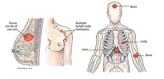 Xương là vị trí di căn phổ biến của những người bị ung thư vú giai đoạn 4. Những vị trí di căn khác có thể bao gồm gan, phổi và não.