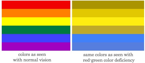 Rối loạn về màu sắc là tình trạng thường gặp nhiều ở nam giới hơn. Một số người bị rối loạn về màu sắc, làm cho họ nhìn một số màu nhất định khác hẳn với cách đa số mọi người nhìn thấy màu đó.