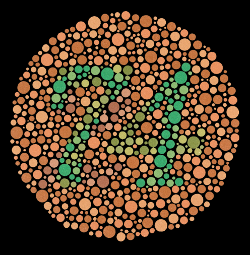 Bạn có nhìn thấy số 74 trong hình không? Nếu có thì xin chúc mừng, bạn không bị mù màu xanh!!!