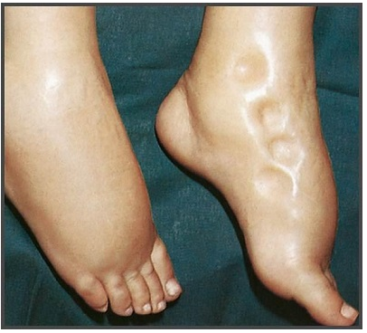 Phù rất phổ biến trong viêm khớp dạng thấp vì viêm khớp dạng thấp là hậu quả của việc viêm bao hoạt dịch hoạt động. Viêm khớp dạng thấp do viêm mạch do có bệnh lý thần kinh ngoại vi (tổn thương thần kinh ngoại vi) có thể là một nguyên nhân khác. Sưng mắt cá chân và bắp chân có thể là biểu hiện của viêm tĩnh mạch hoặc tắc nghẽn hệ bạch huyết, rách cơ bắp chân, cũng như các bệnh lý thông thường khác (tức là suy tim, bệnh thận).