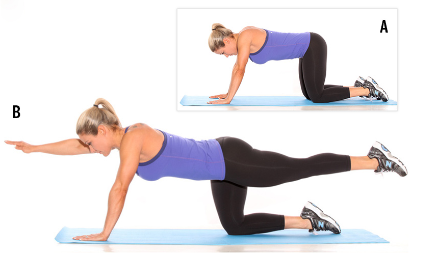Đi giày cao gót mỗi ngày có thể làm phần thân giữa của bạn bị yếu, dẫn đến mỏi cột sống. Nếu bạn để ý thì bạn sẽ thấy rằng, đa số bạn sẽ thở nông hơn nếu thở bằng phần trên của ngực. Các bài luyện tập thở có thể kích thích cơ hoành và cơ bụng, từ đó giúp kích thích việc phát triển cơ ở phần giữa cơ thể. Thực hiện xen kẽ với các bài tập thở và các bài tập mở rộng chân và cánh tay của bạn trong tư thế “4 chân” và tư thế nằm ngửa sẽ làm phần giữa của bạn khỏe hơn, trong khi thực hiện tư thế "cây cầy" sẽ giúp phần hông mông của bạn ổn định.