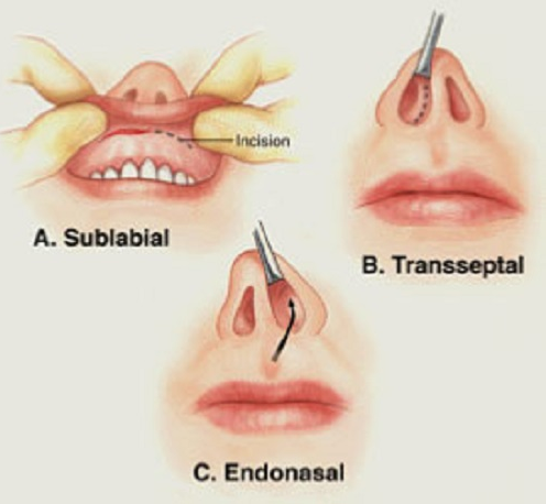 Đa số các khối u tuyến yên có thể được loại bỏ bằng hình thức phẫu thuật qua xoang bướm (transsphenoidally). Khối u sẽ được tiếp cận thông qua xoang bướm, một trong những xoang nằm phía sau mũi. Rất hiếm khi cần phải phẫu thuật mở qua sọ (craniotomy). Có 3 cách tiếp cận hố yên (khoang xương tại sọ, bên trong chứa tuyến yên). Rất nhiều chuyên gia phẫu thuật thần kinh hiện nay sử dụng phương pháp tiếp cận trực tiếp qua mũi (transnasal), tức là bác sỹ sẽ tạo ra một vết cắt ở thành sau của mũi và xoang bướm để tiếp cận hố yên và tuyến yên. Ngoài ra, vết cắt cũng có thể được tạo ra dọc theo phía trước của vách ngăn mũi hoặc phía dưới môi trên.