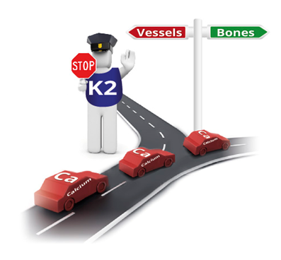 Như vậy, có thể nói, vitamin K2 như một chiếc công tắc, sẽ giúp “bật” osteocalcin và MGP, giúp canxi không bị lắng đọng tại các mô mềm mà đi vào xương một cách hiệu quả hơn. Thiếu vitamin K2, lượng canxi được hấp thu vào sẽ không được sử dụng hiệu quả, thậm chí có thể gây nguy hiểm vì tình trạng lắng đọng, vôi hóa canxi.