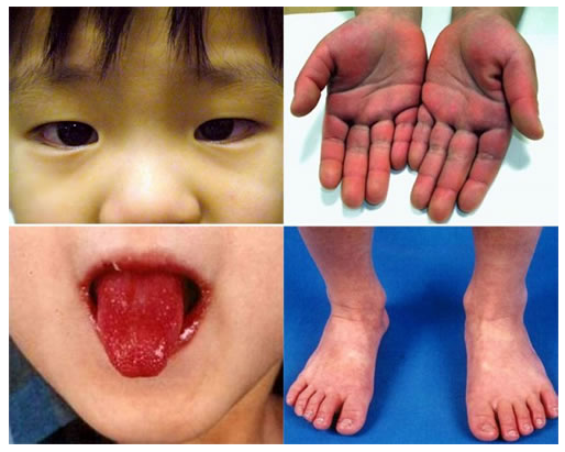 Đây là một căn bệnh hiếm gặp được đặc trưng bởi sự viêm các mạch máu trong toàn bộ cơ thể ở tay, chân, miệng, môi và họng. Các triệu chứng khác bao gồm sốt và sưng hạch bạch huyết. Nguyên nhân gây bệnh hiện vẫn chưa được làm rõ.