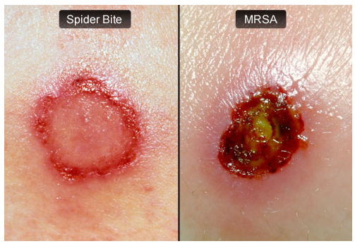 Côn trùng cắn, phát ban và các vấn đề khác về da có thể nhầm lẫn với nhiễm MRSA vì các triệu chứng tương tự. Bác sĩ sẽ hỏi bệnh nhân về tiền sử bị nhện cắn hoặc có nhìn thấy nhện hay không. Nhiều “vết cắn” thực ra lại là nhiễm MRSA. Nếu nhiễm trùng da lan rộng hoặc không cải thiện sau 2-3 ngày điều trị kháng sinh thông thường, bạn nên đi khám bác sĩ.