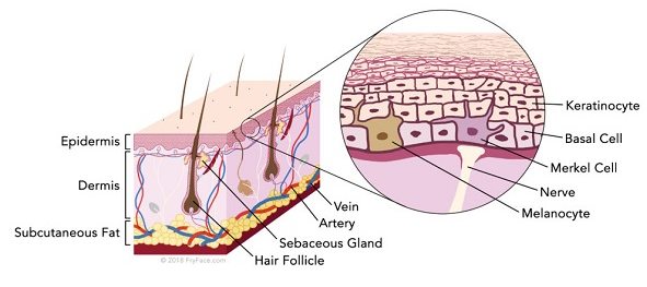 Ung thư da là sự quá sản của các tế bào ở thượng bì (lớp trên cùng của da). Do DNA bị phá hủy bởi đột biến, các tế bào nhân lên nhanh chóng và hình thành khối u ác tính ở da.